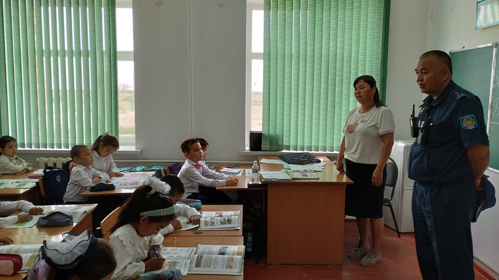 Осы орайда, мектебімізге Қызылорда КПБ ЖПКб ЮПб УПИ-ры полиция капитаны М.Байназаров арнайы келіп, кәмелетке толмағандармен және оларға қарсы жасалатын қылмыстық құқық бұзушылықты болдырмау, синтетикалық есірткінің зияны мен нашақорлықтың зардаптары туралы түсініктеме беріп өтті.