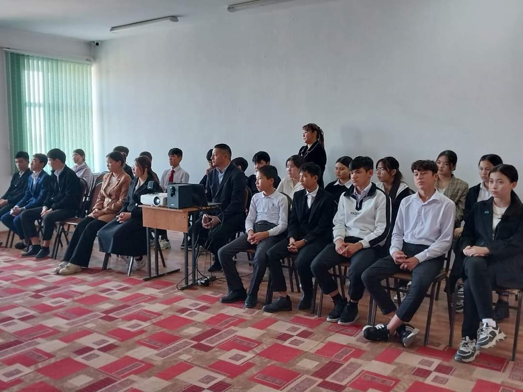 Кездесуге ҚПБ-ның ЖҚПБ-ның ЮПБ-нің УПИ-ры полиция капитаны Жаңабай Дархан арнайы шақыртылды. Кездесу барысында оқушыларға нашақорлық пен вейб зияны туралы түсіндірілді.